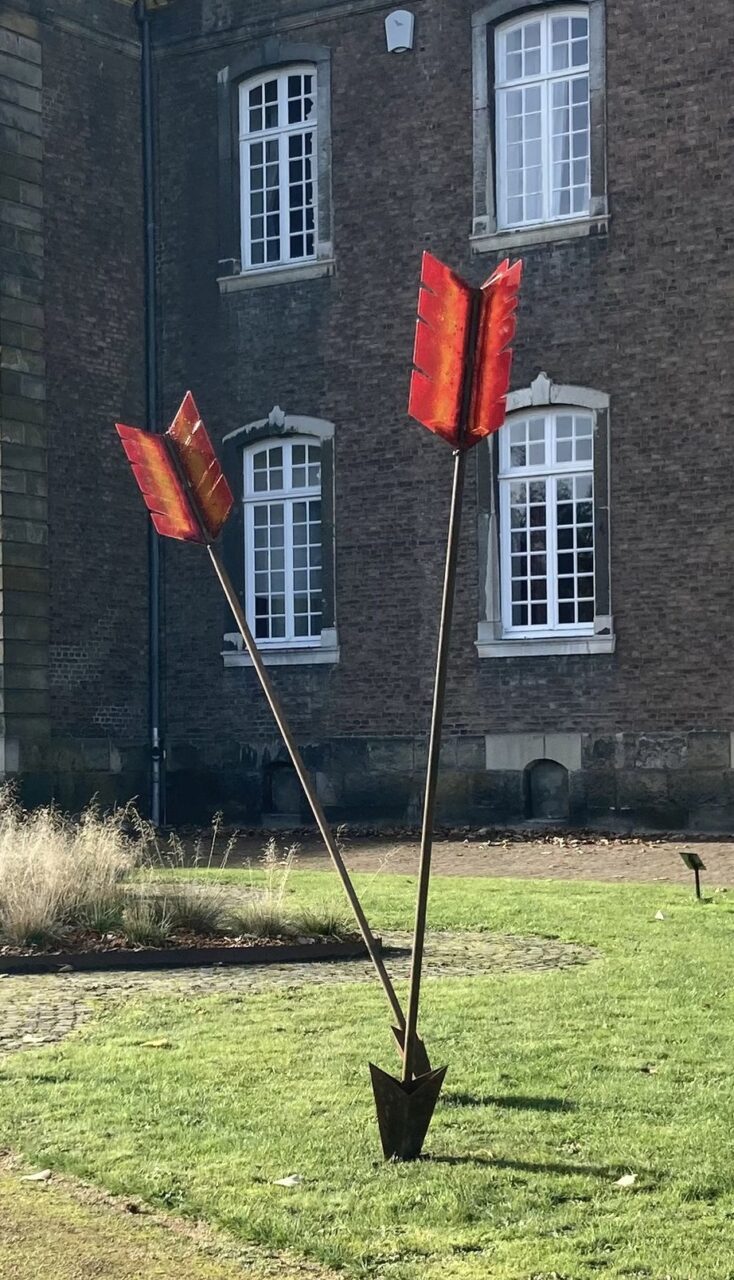 In tegendeel de Beeldentuin Rolduc werd midden in het hart getroffen. Twee nieuwe objecten, reuze pijlen, afgeschoten door Cupido kwamen pardoes in onze beeldentuin terecht.
